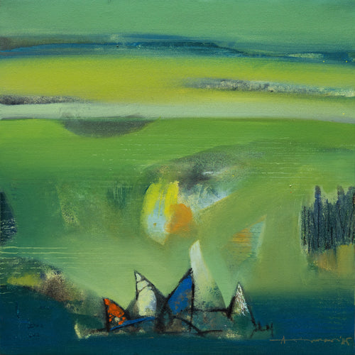 Ambient Landscape 15 : Abstract canvas painting by Arunava Mondal