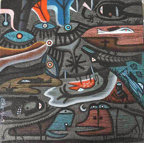 Mother-Tree and Forest Family, Gond canvas painting by Lilesh Urweti